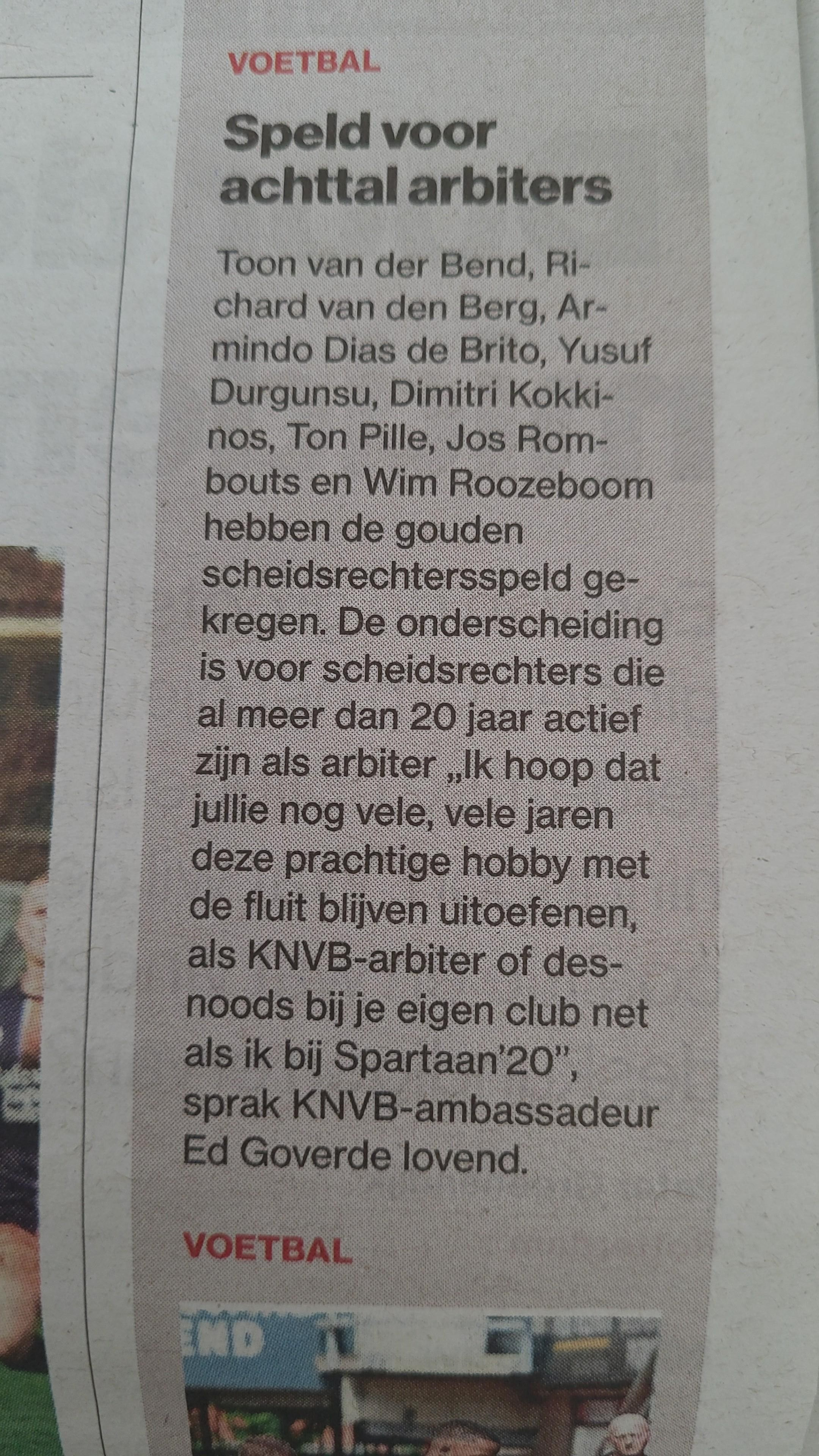 Hij spelde de Gouden Scheidsrechter op en overhandigde de bijbehorende oorkonde. Onder de gedecoreerde waren 2 RSV'ers, t.w. Ton Pille en Dimitri Kokkinos. De andere gedecoreerden waren Toon van der Bend, Richard van den Berg, Armindo Dias de Brito, Yusuf Durgunsu, Jos Rombouts en Wim Roozenboom.