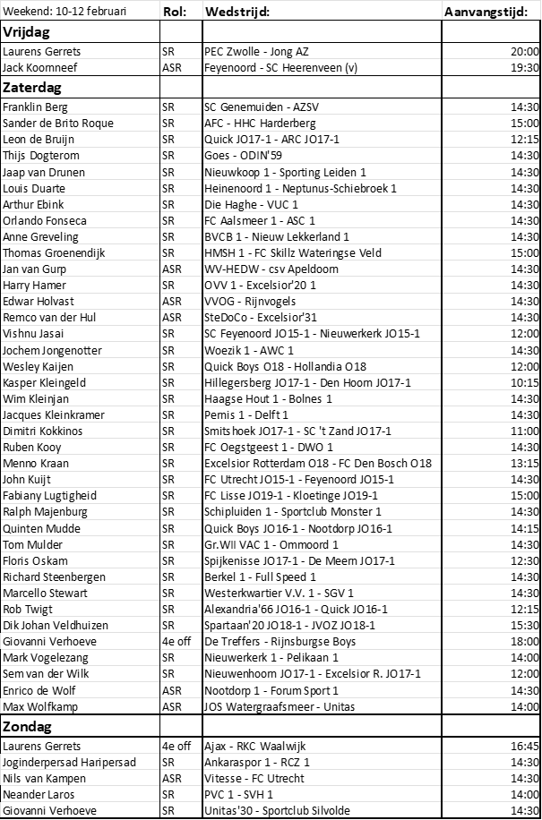 Op zondag komen er ook nog een vijftal leden in actie, waaronder Nils van Kampen die naar het Gelredome mag als assistent bij Vitesse - FC Utrecht.
