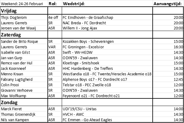 Fabiany Lugtigheid(foto) fluit de bekerwedstijd tussen Alphense Boys o17 en FC Dordrecht o17 en Colin Prooi fluit de bekerwedstrijd tussen Telstar o18 en PEC Zwolle o18.